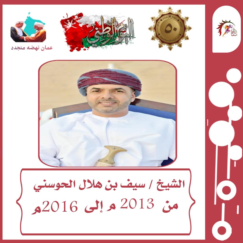 تصحيح الخطأ في الفترة الزمنية لرئاسة شيخ سيف بن هلال الحوسني من ٢٠١٢ وإلى ٢٠١٦