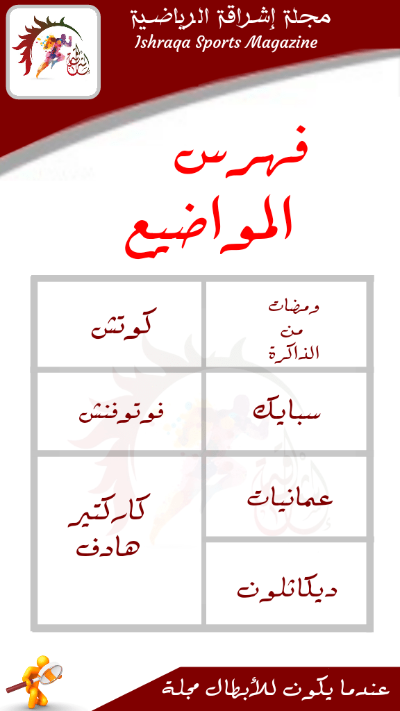 مجلة إشراقة الرياضية Ishraqa Sports Magazine غير مصنف 30 ديسمبر، 202031 ديسمبر، 2020 1 Minute الإصدار النصف شهري العدد التاسع الخميس 31ديسمبر 2020 م. شارك هذا الموضوع: النقر للمشاركة على X (فتح في نافذة جديدة) X انقر للمشاركة على فيسبوك (فتح في نافذة جديدة) فيس بوك إعجاب تحميل... مرتبط نُشر بواسطة Ishraqa Sports Magazine حيث نلتقي بالأبطال المخضرمين الذين التحقو بالمنتخب ومثلو الوطن في جميع المحافل الدولية والعربية والخليجية والمحلية مشاهدة كل التدوينات بواسطة Ishraqa Sports Magazine منشور 30 ديسمبر، 202031 ديسمبر، 2020