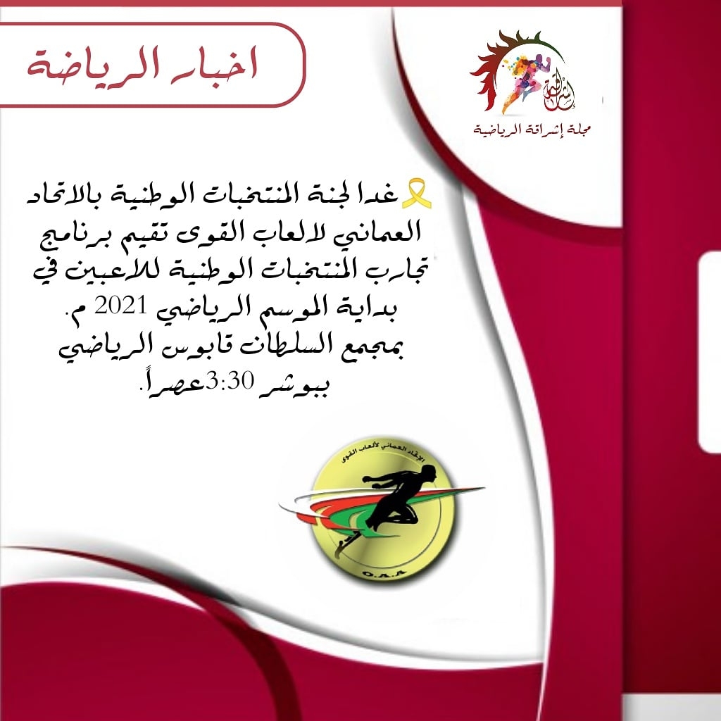 لجنة المنتخبات الوطنية بالاتحاد العماني لالعاب القوى تقيم برنامج تجارب المنتخبات الوطنية للاعبين.