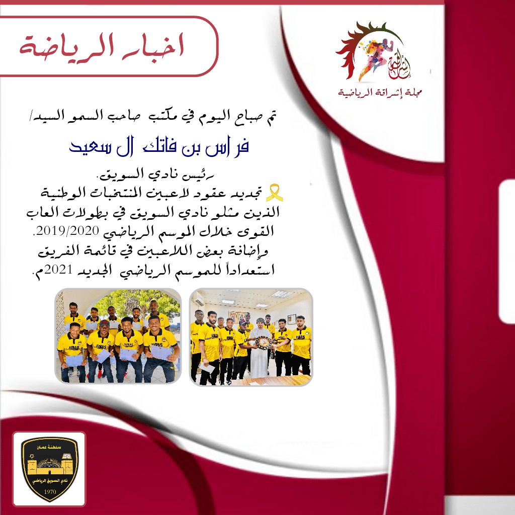 السويق يجدد عقود لاعبين المنتخبات الوطنية الذين مثلو نادي في الموسم الماضي 2019/2020 م، ويضيف مجموعة جديده استعداداً للموسم الجديد 2021م.