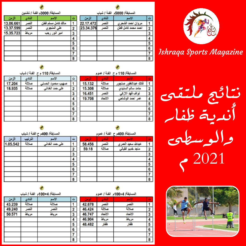 مجلة إشراقة الرياضية Ishraqa Sports Magazine غير مصنف 13 مارس، 2021 1 Minute نتائج ملتقى أندية ظفار والوسطى 2021 م. شارك هذا الموضوع: النقر للمشاركة على X (فتح في نافذة جديدة) X انقر للمشاركة على فيسبوك (فتح في نافذة جديدة) فيس بوك إعجاب تحميل... مرتبط نُشر بواسطة Ishraqa Sports Magazine حيث نلتقي بالأبطال المخضرمين الذين التحقو بالمنتخب ومثلو الوطن في جميع المحافل الدولية والعربية والخليجية والمحلية مشاهدة كل التدوينات بواسطة Ishraqa Sports Magazine منشور 13 مارس، 2021