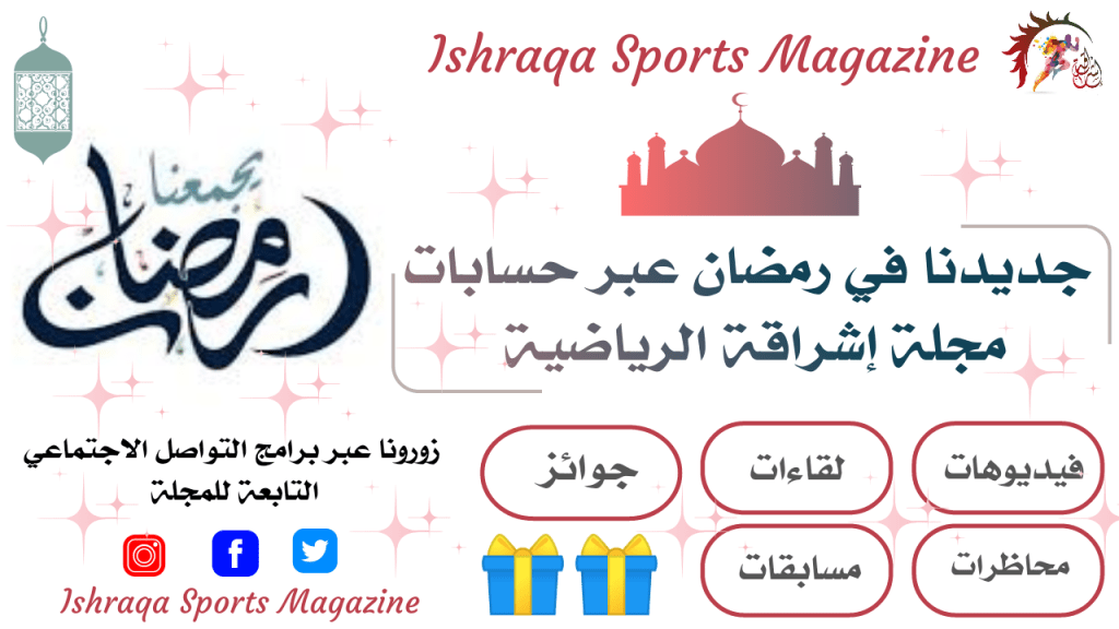 مجلة إشراقة الرياضية Ishraqa Sports Magazine غير مصنف 3 أفريل، 2021 1 Minute ((رمضان يجمعنا)) جديدنا في رمضان عبر حسابات مجلة إشراقة شارك هذا الموضوع: النقر للمشاركة على X (فتح في نافذة جديدة) X انقر للمشاركة على فيسبوك (فتح في نافذة جديدة) فيس بوك إعجاب تحميل... مرتبط نُشر بواسطة Ishraqa Sports Magazine حيث نلتقي بالأبطال المخضرمين الذين التحقو بالمنتخب ومثلو الوطن في جميع المحافل الدولية والعربية والخليجية والمحلية مشاهدة كل التدوينات بواسطة Ishraqa Sports Magazine منشور 3 أفريل، 2021