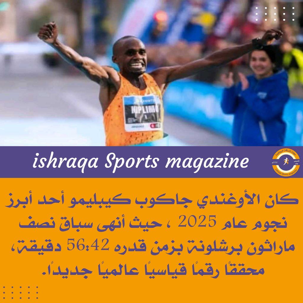 كان الأوغندي جاكوب كيبليمو أحد أبرز نجوم عام 2025 ، حيث أنهى سباق نصف ماراثون برشلونة بزمن قدره 56:42 دقيقة، محققًا رقمًا قياسيًا عالميًا جديدًا. Ishraqa Sports Magazine غير مصنف 27 ديسمبر، 2025 1 Minute بقلم / يوسف الزعابي شارك هذا الموضوع: النقر للمشاركة على X (فتح في نافذة جديدة) X انقر للمشاركة على فيسبوك (فتح في نافذة جديدة) فيس بوك إعجاب تحميل... مرتبط نُشر بواسطة Ishraqa Sports Magazine حيث نلتقي بالأبطال المخضرمين الذين التحقو بالمنتخب ومثلو الوطن في جميع المحافل الدولية والعربية والخليجية والمحلية مشاهدة كل التدوينات بواسطة Ishraqa Sports Magazine منشور 27 ديسمبر، 2025